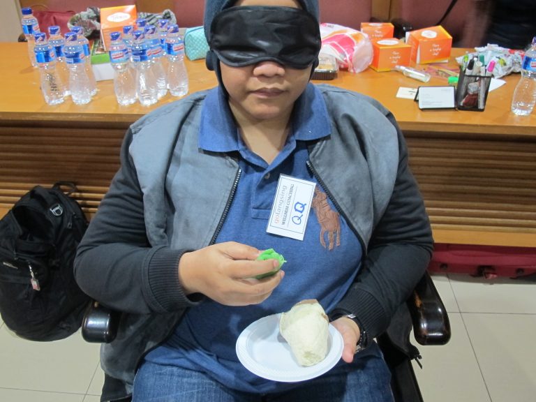 Sesi edukatif sambil makan siang dengan praktek langsung mindful eating. Momen makan menjadi ajang latihan sadar, penuh rasa syukur, dan menghindari makan otomatis karena stres.